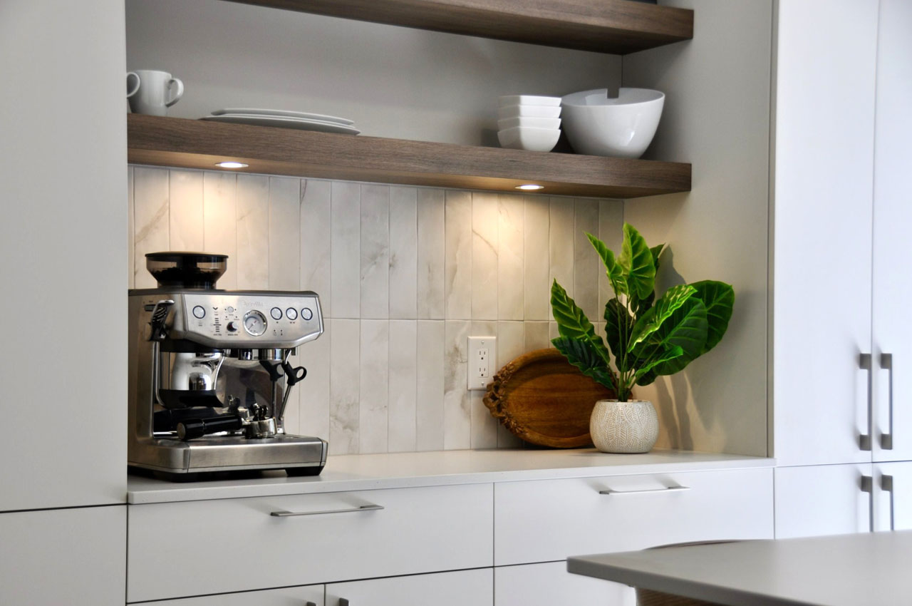 Le mandat : Notre cliente était prête à réinventer sa cuisine de A à Z. L’espace, autrefois sombre et peu fonctionnel, est devenu lumineux, accueillant et d’une élégance intemporelle. Nous avons retiré les portes françaises encombrantes et ouvert le passage jusqu’au plafond, créant ainsi une connexion fluide avec la salle à manger. Le nouvel aménagement comprend un îlot généreux, une unité murale sur mesure pour plus de rangement et un coin café fonctionnel, alliant beauté et fonctionnalité dans chaque élément.